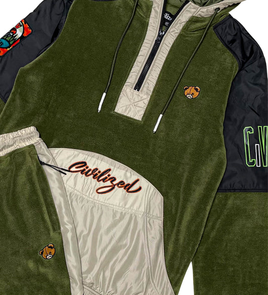 POLAR FLEECE SET W/ NYLON TRIM - Olive